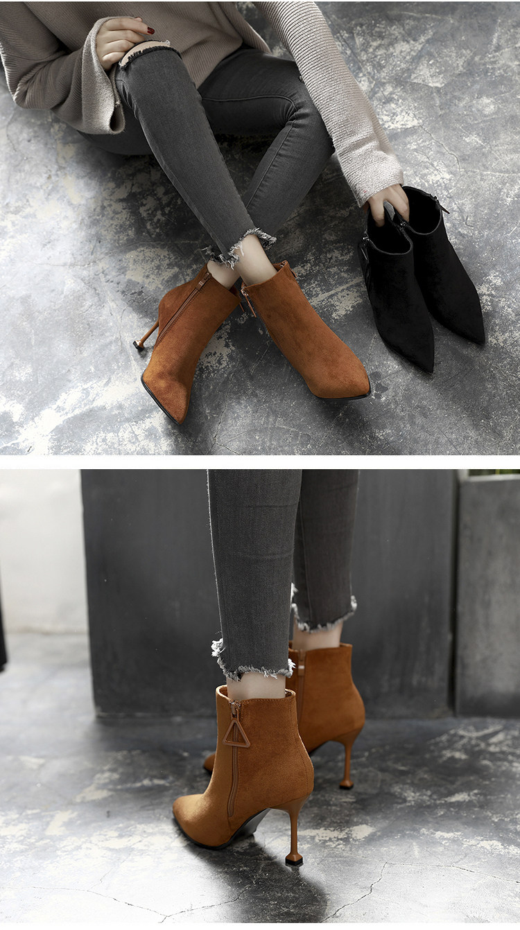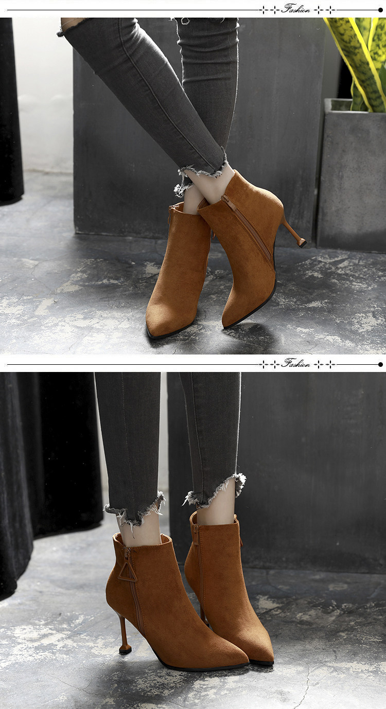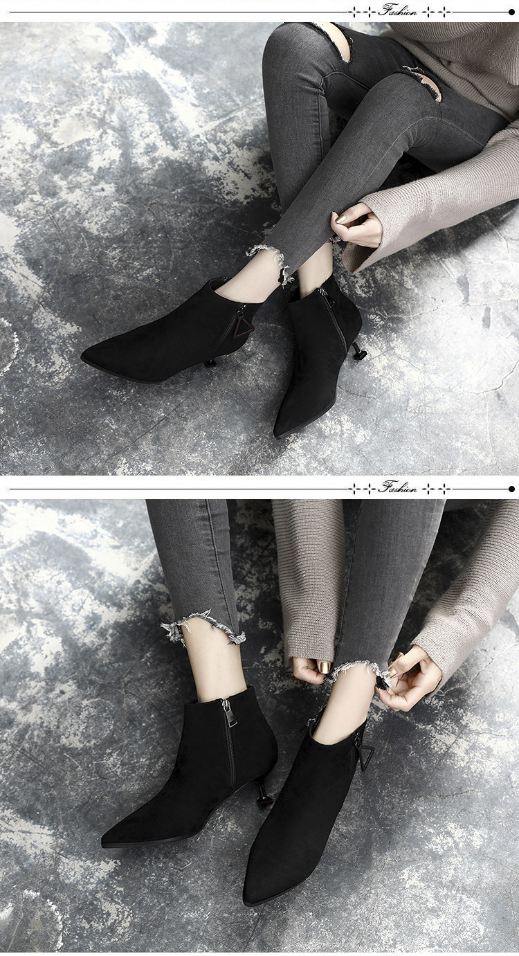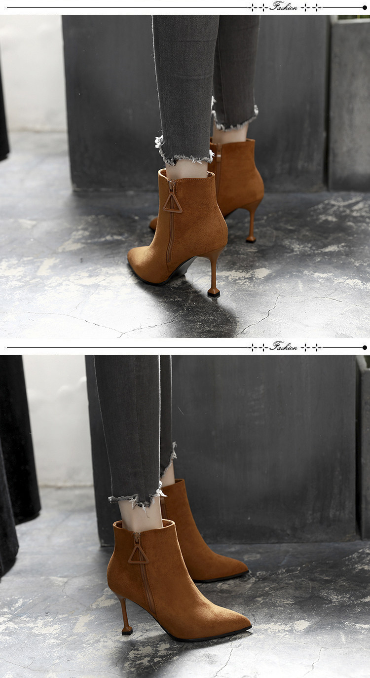 尖头细跟裸靴女冬季高跟鞋短靴百搭马丁靴春秋性感单靴子