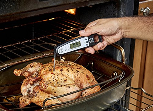 Quick-Read Accuracy: Insert the probe & presto… the display shows the exact temperature accurate to within 2 degrees F (+ or -), so your food is perfectly cooked. Lowers your risk of painful burns, too!