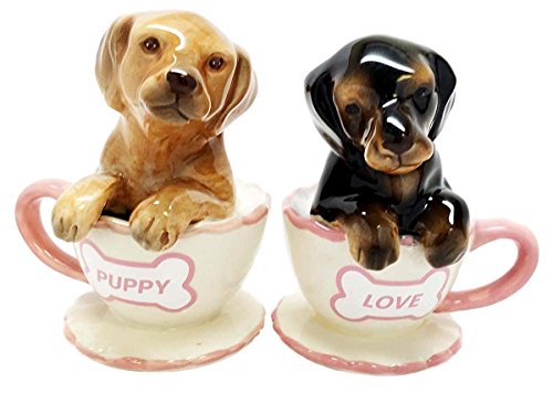 Golden Chocolate Teacup Dachshund Puppies Puppy Love Ceramic Salt Pepper Shakers