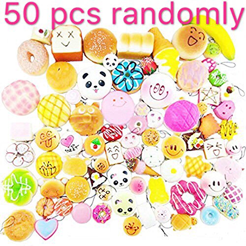 -. Title : 50 Pcs Kawaii Squishies Slow Rising Jumbo/Medium/Mini Random Cake Bread Panda Bun with Phone Straps Kids Pretend Play ibloom squishy