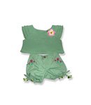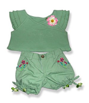 -. Feature : Girls summer teddy bear outfit / green shirt and pants / flowr embelishments / fits 15 inch plush / 2 piece outfit