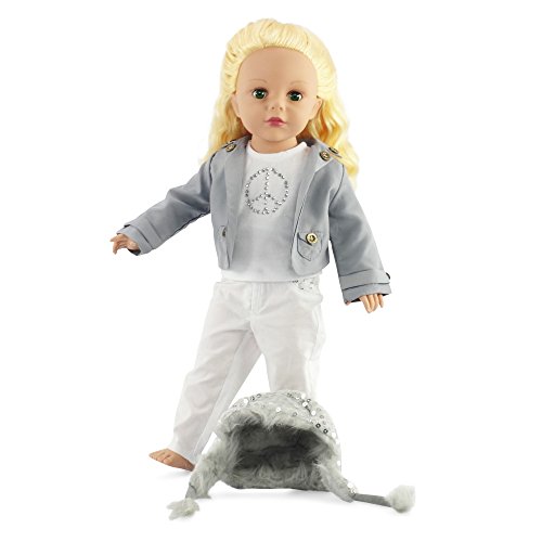 -. Feature : Gift-Boxed! Packaged in classy pink gift box. Stylish 4 piece gray jacket and white pant outfit designed by Emily Rose Doll Clothes / Gray jacket with gray fur lined hat and white shirt with a jeweled peace sign. / White skinny pants with sequin detail on the pocket. Made from luxurious fabrics that hand-wash easily. / Made to fit all 18 inch soft-bodied dolls like American Girl, Gotz, Our Generation, Journey Girl, Madame Alexander, etc. / Designed and manufactured by Emily RoseTM top quality doll manufacturer. We are not affiliated with American Girl®, Reg. Trademark of American Girl, LLC.