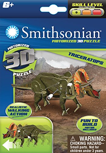 -. Binding : Toy -. Brand : Smithsonian -. EAN : 0605444691038 -. Feature : These cool new 3D Smithsonian puzzles are fun-filled, collectible toys unlike anything else in the toy store / More than just a puzzle, more than just a model, more than just a wind up toy - it's all three in one fun little package / Build your 3 dimensional motorized toys, learn exciting facts about what you've built from the collectible fact card on each box, and then wind them up and watch them go! / Includes one each of Tyrannosaurus Rex, Triceratops and Brachiosaurus puzzles / Smithsonian products bring fun and learning together by utilizing vibrant imagery and unique and relevant subject matter in a hands-on toy that truly engages a child! -. Genre : Educational -. IsAdultProduct : 0 -. Label : Skulldery, Inc -. Manufacturer : Skulldery, Inc -. MPN : 069103 -. PackageQuantity : 1 -. PartNumber : 069103 -. ProductGroup : Toy -. ProductTypeName : TOYS_AND_GAMES -. Publisher : Skulldery, Inc -. Studio : Skulldery, Inc -. Title : Smithsonian Mini Motorized Dinosaur 3D Puzzle Pack -. UPC : 797142333362
