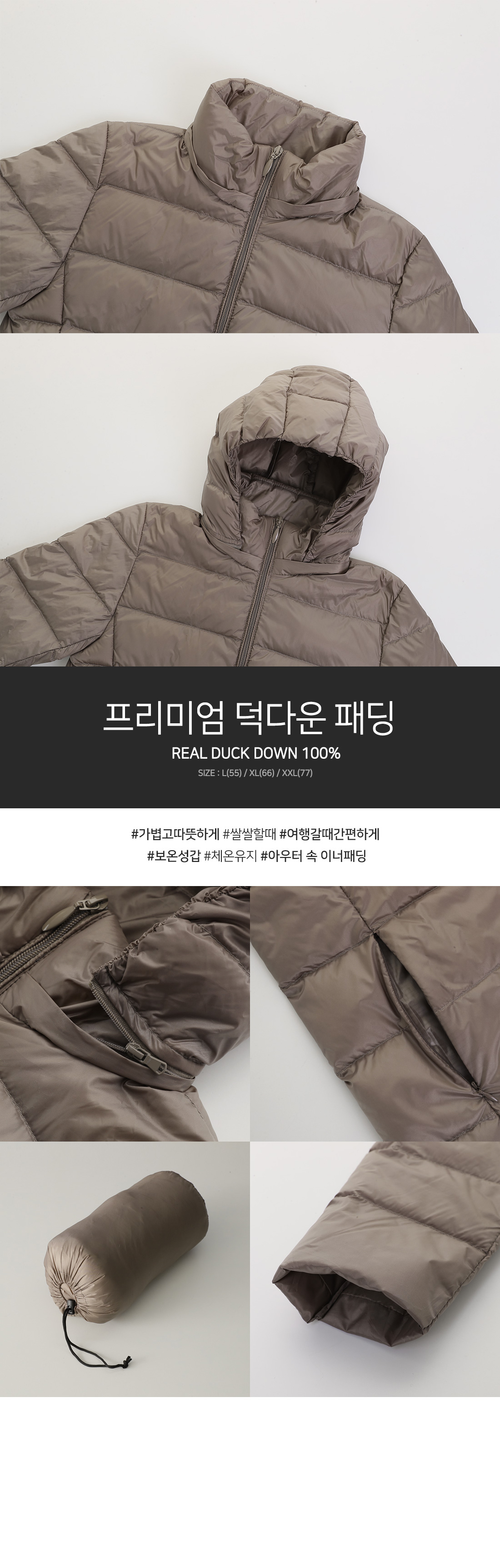 100% 리얼 덕다운으로 보온성UP! 중량은 DOWN !