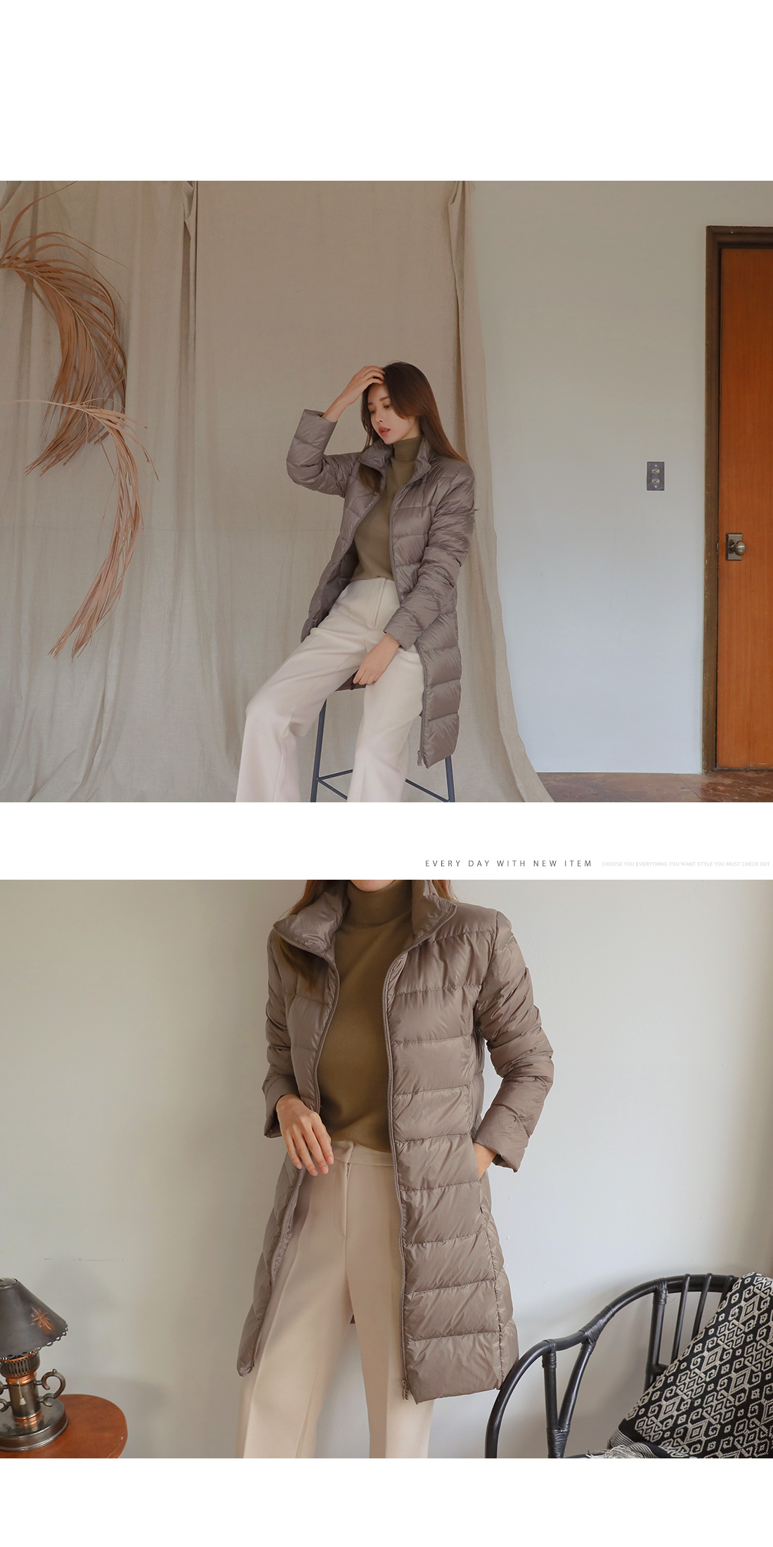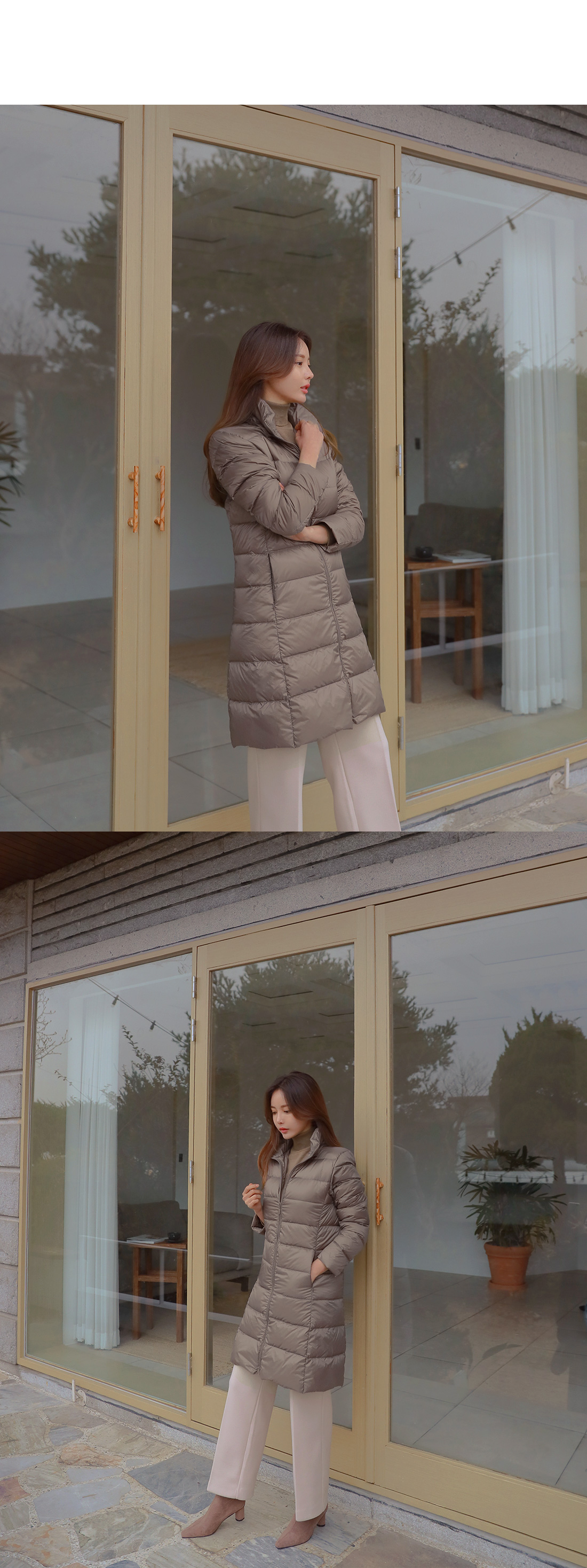 덕다운 패딩으로 롱한 기장감이