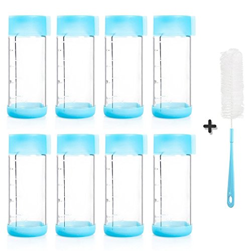 Package : 8 Glass Water Bottles (18oz) and 1 Cleaning Brush