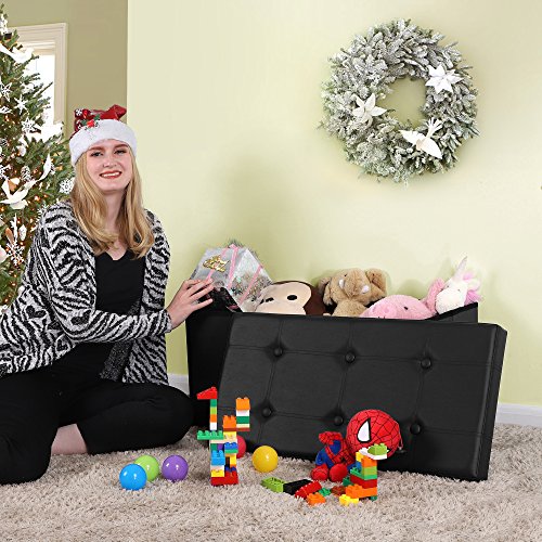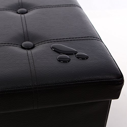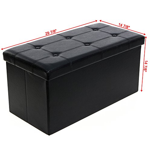 This SONGMICS storage ottoman is finely crafted with superior faux leather quality MDF, the after-set-up construction is sturdy solid, decorative appearance matches your interior decor furniture. It can be used as: Storage Chest/Trunk Sundries finally has somewhere to go, no matter blankets, cushions, clothes, or remotes, books... an easy solution to organize your working and living environment. Entryway Shoe Bench It is sturdy as a bench to be placed at the entrance or closet. You may sit on it to put on or take off your shoes. Foot Rest Tired after whole days' work? Here comes a nice place to rest your feet on while sitting on couch. Puppy Step Puppies may use it to step onto your bed or watch out of the window. Coffee Table With ottoman tray, it becomes an ottoman coffee table to place drinks or foods. Multiple Choices We have a variety of folding storage ottomans in size and color, simply search SONGMICS storage ottoman to find more. Specifications: - Color: Black - Upholstery Material: Faux Leather - Seater Filling Material: Sofa Sponge - Construction Material: CARB P2 Medium Density Fiber Board - Bottom Material: Oxford Fabric - Product Size: 29 7/8"L x 14 7/8"W x 14 7/8"H (76 x 38 x 38cm) - Product Weight: 13.6lbs Package Contents: - 1 x Folding Storage Ottoman Notes: - Side boards are fixed with staples. Please check and be careful with it if any board looses or sways. 0 |