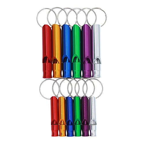 3-Bears® Emergency Survival Aluminum Whistle Key Chain for Hiking Camping Climbing(Large and Small Sizes, Red,Yellow,Blue,Green,Purple,Silver, Pack of 12)