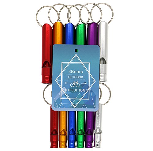 3-BEARS® EMERGENCY SURVIVAL ALUMINUM WHISTLE KEY CHAIN FOR HIKING CAMPING CLIMBING(LARGE AND SMALL SIZES, RED,YELLOW,BLUE,GREEN,PURPLE,SILVER, PACK OF 6 OR 12)