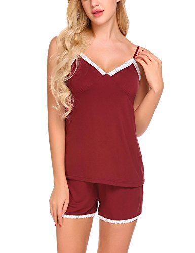 -. Feature : Casual spaghetti strap v neckline sleeveless lace patchwork sleepwear set, make you more comfortable and casual for your sleep or lounge around home / Pretty Camisole. Breathable hollow out lace patchwork, V-Neckline decoration, adjustable spaghetti strap, the top features an elegant look to make you more charming / Super quality Modal with elastic ,very soft comfortable ,breathable and lightweight. Great Valentines day gifts for her .Two piece pajama sets with cami and shorts. / Lace trimmed design sleepwear set with elastic waist shorts.Adjustable strap high low hem women Camisole.Suitable for sleep or night wear. / Pajamas Cami Shorts Set Nightwear, Perfect Gift Choice for Your Girlfriend, Wife, Mother, Sisters or Friends on Birthday, Christmas Day, New Year, Valentine's Day, Bridal Party Gifts, Honeymoon Vocation or other Festivals or Anniversaries