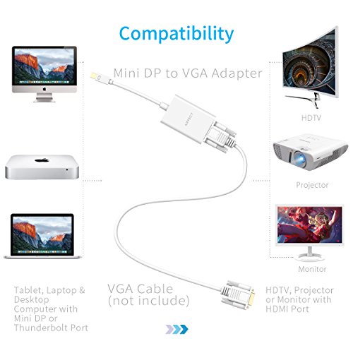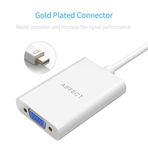 AIFFECT Mini DisplayPort (Thunderbolt Port Compatible) to VGA Converter with Audio For Apple Macbook, Google Chromebook and More - White