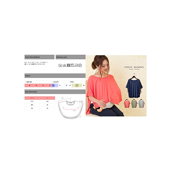 원본상품명: Sweet Mommy 授乳ポンチョにもなる とろみ竹?維 ドルマントップス 360度 目?し 授乳ケ?プ 天然素材 Tシャツ トップス 春 夏 半袖 産前産後 授乳服 マタニティ