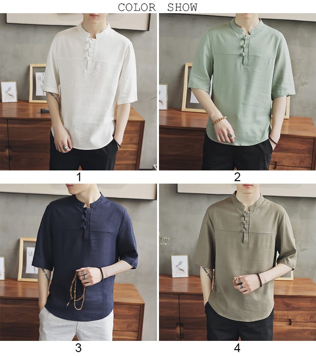 半袖Tシャツ メンズ リネン チャイナ服 男性用 半袖シャツ レトロ メンズTシャツ 夏物 トップス 薄手 五分丈袖 ゆったりメンズ用の半袖Tシャツが登場清涼感たっぷりの綿麻混紡素材に半袖の仕様で夏に爽やかな着心地襟部分のチャイナボタンはユニックなアクセントを付けるチャイナ服をイメージしたデザインでとてもレトロなオシャレ感で魅せる男性が着やすいカラバリが用意され、お好みやコーデ次第で選べるMから5XLの七つのサイズが揃えて、お気に入りのサイズ感も自由にチョイスできるカラー:1 2 3 4素材 麻混紡サイズ(cm) M L XL 2XL 3XL 4XL 5XLM 着丈70 バスト100 肩幅42L 着丈71 バスト104 肩幅43XL 着丈73 バスト108 肩幅452XL 着丈75 バスト112 肩幅473XL 着丈77 バスト118 肩幅484XL 着丈78 バスト124 肩幅505XL 着丈79 バスト130 肩幅52ご注意:※サイズは平置きサイズです。素人採寸ですので、若干の誤差がございます、ご了承ください。