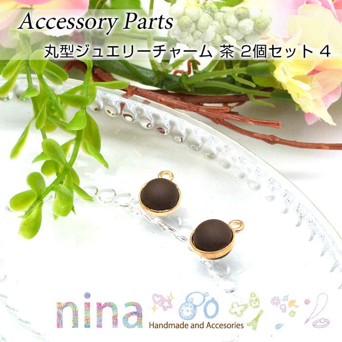 ■商品名:丸型ジュエリーチャーム 茶 2個セット