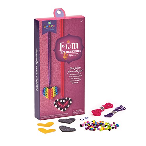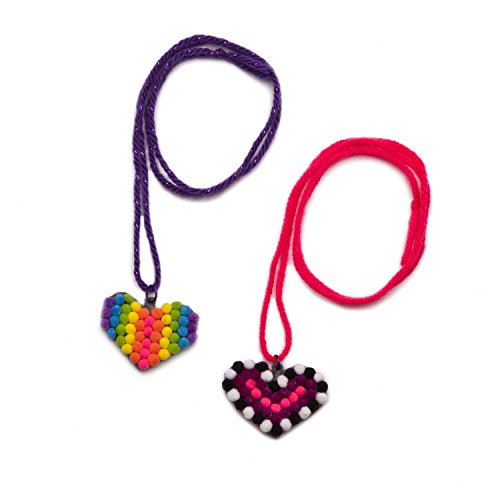 Poms rule! two hearts and enough pom poms for two cute necklaces. Just lay our special double-sided adhesive on the heart and then arrange the pom poms in any pattern you wish. Next, Iron the back side to activate the adhesive-this makes the poms secure. Wear the one you made-or trade with a gal pal. That's what BFFs are for.