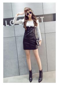 ツーピース レザーワンピース 編み上げ ミニワンピース ノースリーブ トップス タイト タイトワンピース