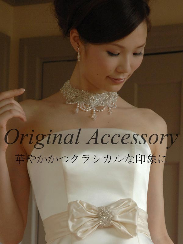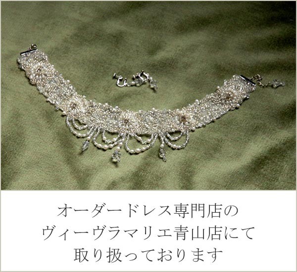 オーダードレス専門店の国内自社アトリエにて1つ1つ丁寧に製作しております。 また、こちらのネックレスは、ヴィーヴラマリエ!青山店で取り扱っております。 |