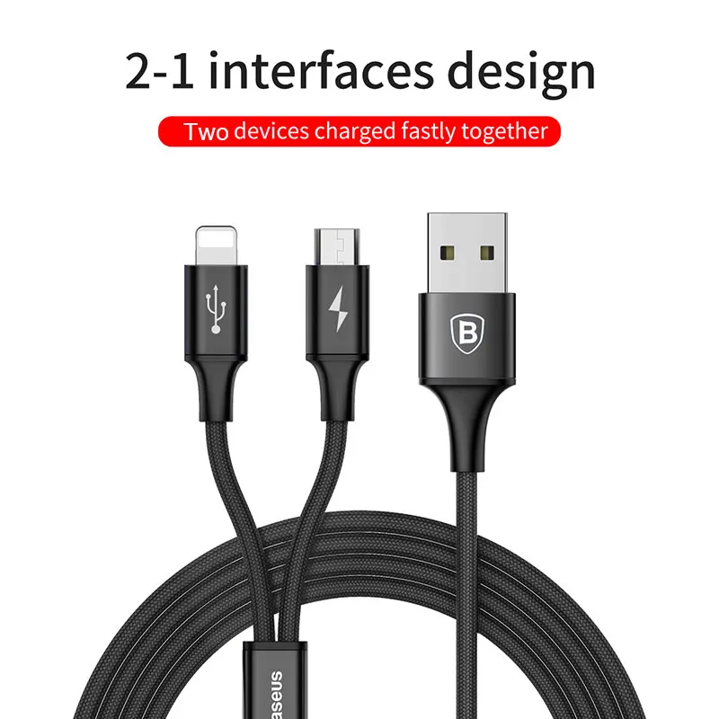 Feature 1:2 in 1 For iPhone & Micro USB Charging Cable