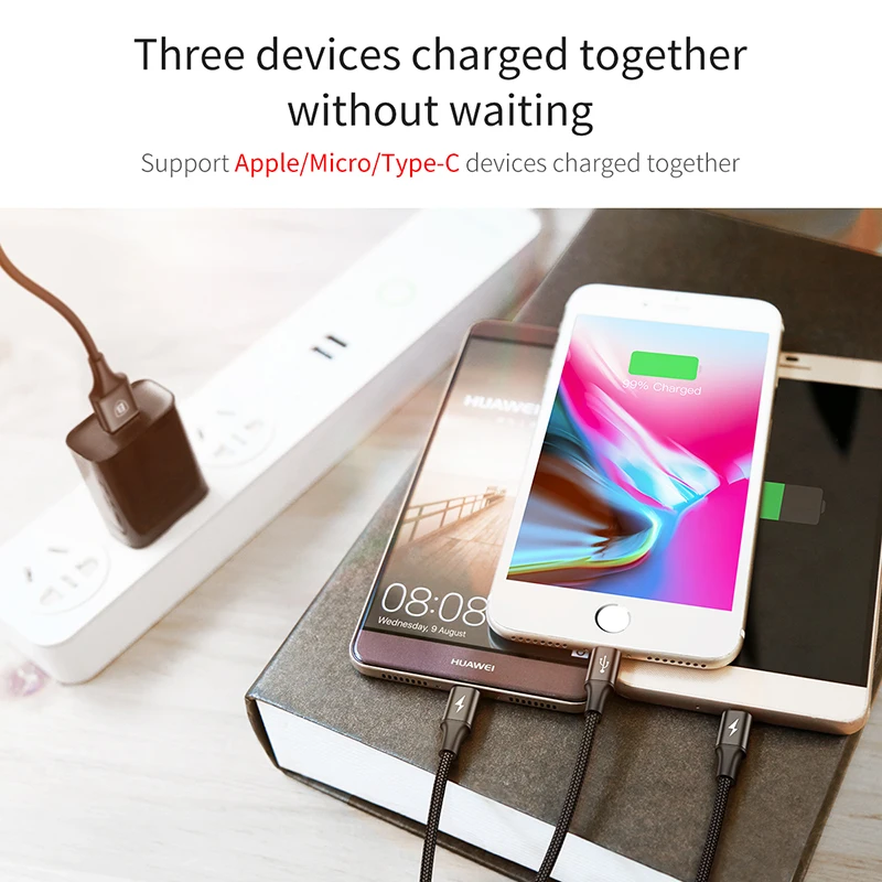 Feature 2:3 in 1 For iPhone & Micro USB & Type c USB Wire Cord
