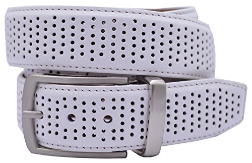 Men's 35 mm wide Greg Norman ultimate performance golf belt with mini perforations. Padded and edge stitched. Shark logo at buckle end.Feature