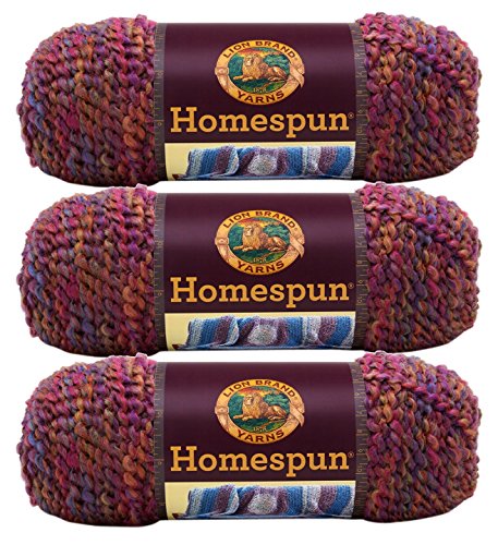 - Price is for 3 skeins of Lion Brand Homespun Yarn Wisteria 790-422 (UPC 023032794228) for a total of 555 yards/18oz (507 meters/510gr) knitting yarn