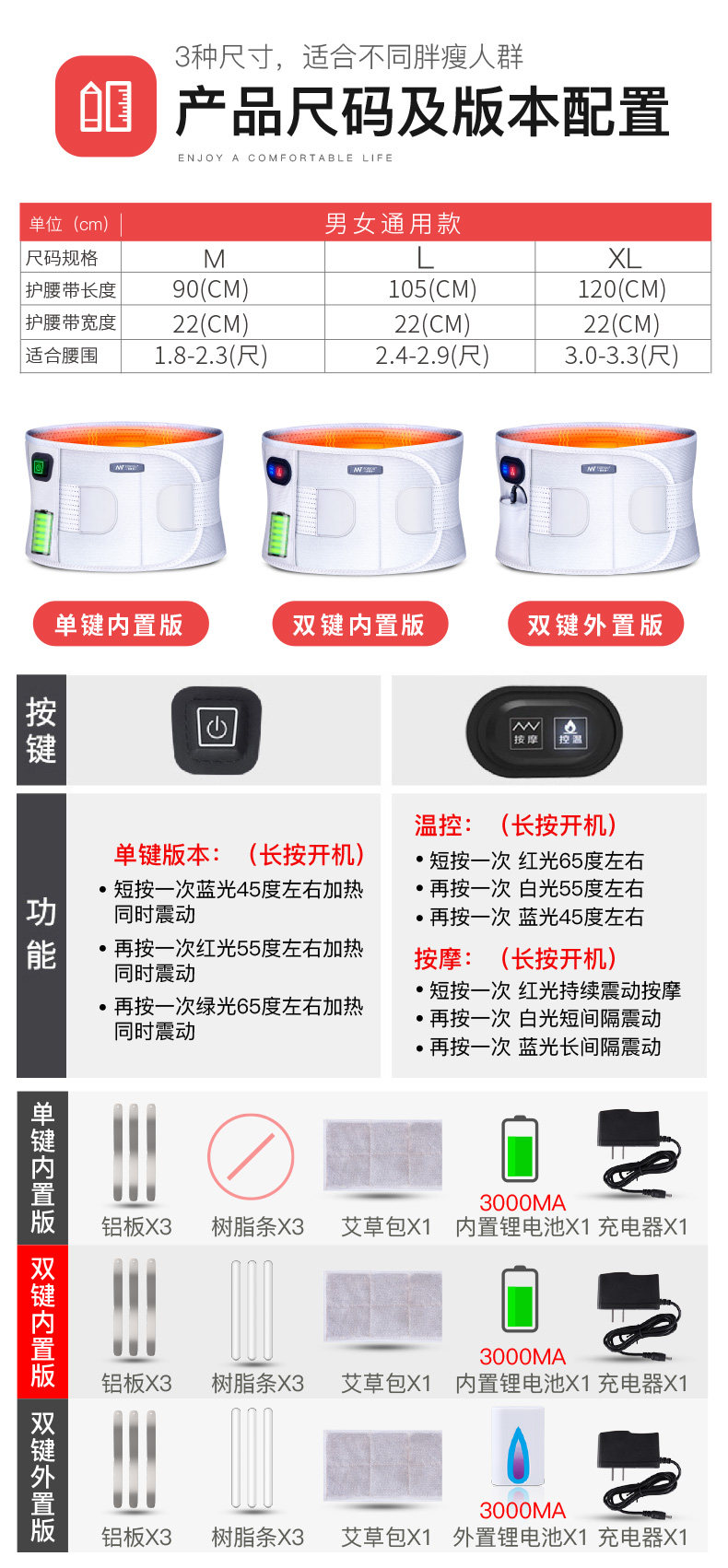 护腰带电热加热腰部保暖艾灸暖宫按摩器腰椎间盘发热腰疼突出充电