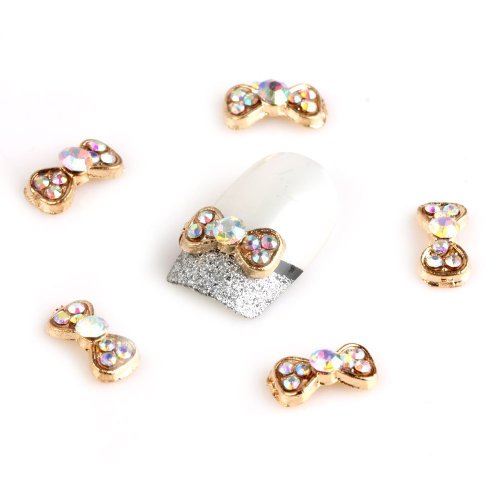 - Title : Leegoal Rhinestones Gold Bow Tie 10 pieces Silver 3D Alloy Nail Art Slices Glitters DIY Decorations