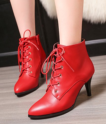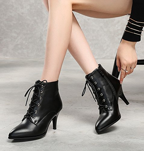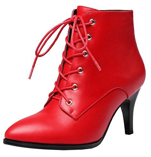 Binding : Apparel Product Description The fall is coming. And do you need to change the style of your shoes? If you have this idea, why not choose the ideal shoes in our shop? This pair of boots is for women, girls, young ladies and office workers. You will look sexy and chic when wearing them. The heels measure 2.9 inches. You will look slimmer and slender in their chunky mid heels. So you will not feel too tired when walking with them. The pair of shoes features ankle warp and lace up. The design of pointed toe will make you look cool. The sole is made of good rubber. You will feel comfortable in their soft bottom. They are of high quality and durable. Come on and take them away! 0