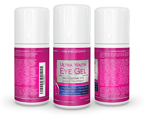 -. Binding : Health and Beauty -. Brand : Pure Body Naturals -. EAN : 0784672386524 -. Feature : ► Erase Fine Lines and Wrinkles ◀ Father Time isn't always generous. In fact, when it comes to the signs of aging, the skin around the eyes is one of the first places to sag and develop creases. Most eye creams for lines and wrinkles don't do much aside from getting your hopes up. But Ultra Youth is a wrinkle cream you can count on! With powerhouse ingredients like Aloe, Matrixyl 3000, and Plant Stem Cells that are rich in antioxidants, they aggressively fight aging by boosting collagen production, smoothing out wrinkles, and firming sagging skin. The best part? Our expert blend was specially designed to prevent further aging while offering long-term results. / ► Under Eye Dark Circle Treatment ◀ When it comes to a healthy-looking complexion, the infamous raccoon eyes are one of the biggest offenders. Most people assume that the black and purple pigmentation is the result of fatigue. However, one of the main causes is low collagen production, making the blood vessels under the skin more visible. Ultra Youth is a dark circles under eyes treatment that contains ingredients like Jojoba Oil and Licorice to encourage collagen production and protect eye skin from further damage and pigmentation. It's a great eye treatment for men and women that will leave you looking refreshed and vibrant! / ► Puffy Eyes Cream ◀ Suffering from puffiness under the eyes? Those bags are likely the result of fluid retention, allergies, lack of sleep, or even genes, resulting in a swollen appearance that's difficult to get rid of. Ultra Youth is a puffy eyes reducer that works wonders! One of the stars of our incredible formula is Cucumber, which naturally reduces eye bags with its anti-inflammatory properties. After regular use, you'll see those bags deflate faster than you could've dreamed! And because Ultra Youth is non-comedogenic and hypo-allergenic, it's an eye bags cream that's as safe as it is effective! / ► Deeply Nourish and Hydrate the Skin ◀ The skin around the eyes is particularly thin and fragile, making it vulnerable to pollutants, dryness, and UV damage. While most of these factors are inevitable or unavoidable, Ultra Youth can help reverse as well as protect against those circles, wrinkles, and bags under the eyes that we all want to avoid! With Vitamin E, Frankincense, and Silk Amino Acid, Ultra Youth provides your skin with a bounty of nutrients to keep it firm, smooth, and hydrated. Can your current eye gel cream do all of that? / ► Expert Blend ◀ The dermatologists at Pure Body Naturals continually strive to create effective products that bring radiant results. With Ultra Youth, we've managed to formulate an under eye creame that outdoes the competition! With organic ingredients like Licorice, Gotu Kola, and Jojoba Oil, this luxurious and lightweight eye treatment is safe for users of all skin types. By utilizing high-quality and botanical-based ingredients, we minimize side effects and maximize results. The Pure Body Naturals team is so excited for you to try Ultra Youth that we're offering it to you with our risk-free guarantee - Satisfaction or your money back! -. Label : Pure Body Naturals -. Manufacturer : Pure Body Naturals -. MPN : Ultra Youth Eye Gel -. PackageQuantity : 1 -. PartNumber : Ultra Youth Eye Gel -. ProductGroup : Beauty -. ProductTypeName : HEALTH_PERSONAL_CARE -. Publisher : Pure Body Naturals -. Size : 15 ML -. Studio : Pure Body Naturals -. Title : Eye Cream for Dark Circles, Puffiness, Under Eye Bags, Wrinkles, Crows Feet, Dry Skin and FINE LINES - This Eye Gel Treatment Addresses EVERY Eye Concern - With Plant Stem Cells, Hyaluronic Acid, Matrixyl 3000, Cucumber, Peptide Complex, Aloe, Vitamin E, MSM & MUCH More, We'll refund your money if not satisfied! Try Risk FREE! 0.5 Fl. Oz/15ML. -. UPC : 784672386524