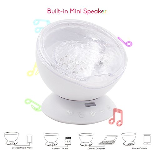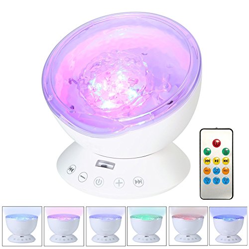 -. Title : SinoPro Remote Control Ocean Wave Projector Night Light with Built-in Mini Music Player [12 LED Beads, 7 Colorful Light Modes] for Kids Adults Bedroom Living Room - Newest Generation