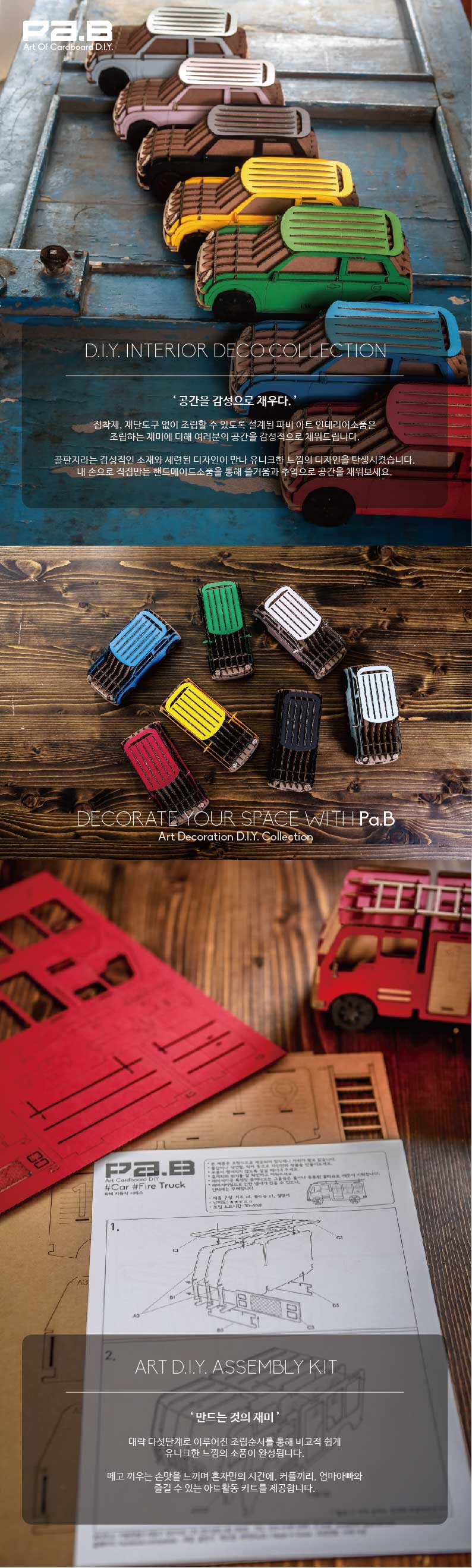 - 파비DIY소품은 골판지를 주 재료로 하여 제작되며, 칼이나 가위, 접착제를 사용하지 않고 조립하는 상품입니다.
