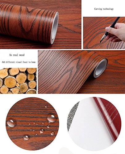 -. Feature : Ebony wood grain contact paper roll size: 23.4 inch wide x 117 inch long (60cmx3M) / Material: PVC ; Adhesive-backing, easy to peel off & stick to dry flat surface . / Self adhesive contact paper wallpaper, sticks very well and easy to work with. / Water Resistant, Bubble Free , Removable and will not damage counters. Can be applied to the majority of flat surfaces . / Application: Perfect contact paper for kitchen drawer cabinet cover, Closet, table furniture reform,pantry, wall decorative, shelf liner,DIY etc .