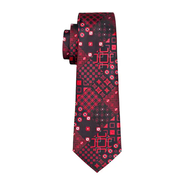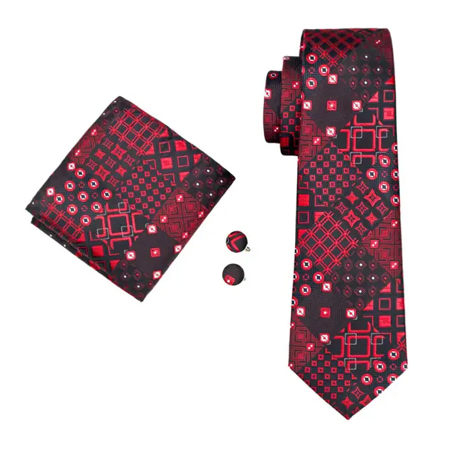 | [해외]LS-1417 배리. 좋아서 클래식 남성 넥타이 레드 참신 100% 실크 넥타이 손수건 커프스 세트 남성 웨딩 파티 신랑 비즈니스 |