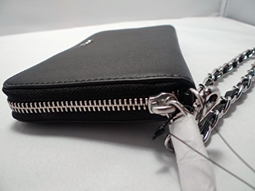 -. Feature : THICK SMOOTH NAPPA LEATHER / LEATHER WEAVED REMOVABLE WRIST CHAIN STRAP / 7.75 X 4" SILVER TONE HARDWARE - 2 MAIN CHAMBERS (FITS PHONES) / ZIP AROUND CLOSURE -ACCORDIAN INTERIOR - COIN ZIP / LEATHER & FABRIC INTERIOR - 8 CARD SLOTS - 2 CASH SLIPS