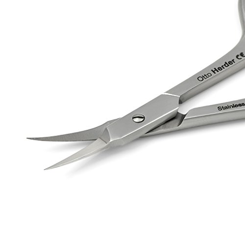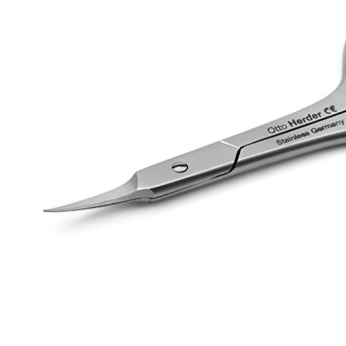 To trim cuticles safely and cleanly, you need the right tools. These cuticle scissors, made in Germany from ice-tempered stainless steel by Otto Herder, are just the job. The high-grade steel has also been sandblasted for extra quality. And the sharp blades are there for precise, safe cutting. This product can be sterilised after each use, and is designed to be very hygienic as you trim skin fragments at the nail bed, alongside dissolved cuticles and annoying hangnails. Only use these scissors on your cuticles. Clean scissors after each use. The scissors are made of INOX, ice-tempered stainless steel, which makes them hygienic, sterilizable, anti-corrosive and durable. Length-9 cm/3.54" inches. Otto Herder Manicure Otto Herder Manicure has been making the highest quality manicure equipment for more than a century. With over 100 years of experience behind them, the company prides itself on having the latest manufacturing technology, as well as combining high-tech machines with traditional skills. Based in the heart of Solingen, a city in Germany renowned for producing high-end blades and cutting instruments, it manufactures top quality manicure equipment. Get a free gift with every purchase: a handmade Czech Glass Nail File from Mont Bleu 0 |