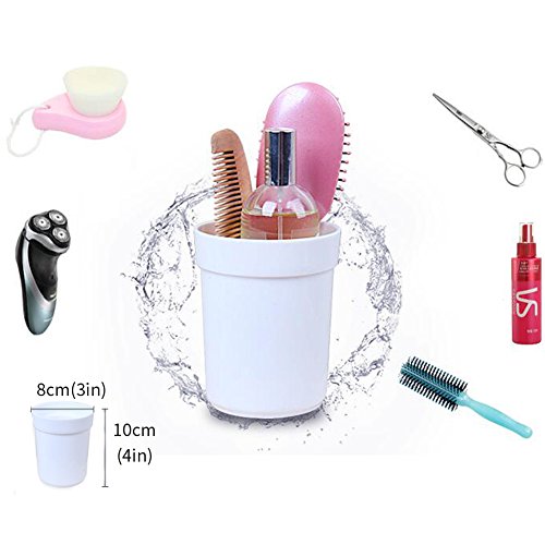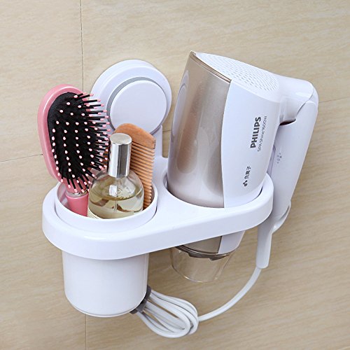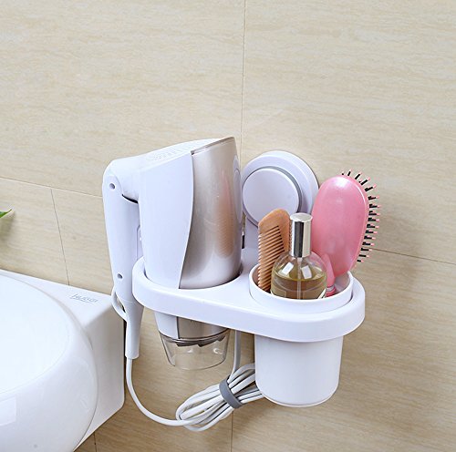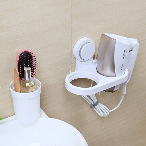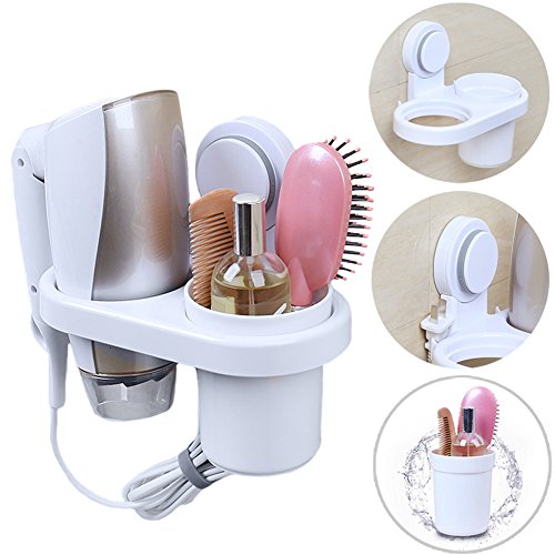 UNIQUE DESIGN: Cone trapezoidal structure (diameter is 8 cm) prevent the hair dryer shaking, and both sides can hang hair dryer. A separate storage cup can place up a variety of objects that is effective use vertical space. And the plug can be put on the left and right side hidden on the back.