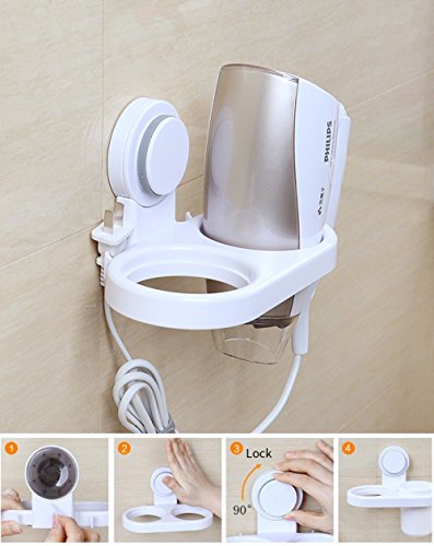 HIGH QUALITY MATERIAL AND FINISH: Engineering grade plastic (ABS) constructed, ensuring high quality and longevity. The fixed technology of seamless sticker and suction cup make hair dryer holder more stable and can suit multiple complex walls.