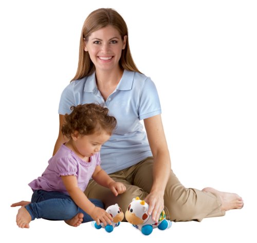 Kiss & Care Cows by VTech is a fun, educational toy that teaches your little one about nurturing and feelings. When the mommy and baby cows are moved together, they give a kiss, teaching your child about emotions. This learning toy has a light-up button that teaches the time of day through fun phrases and sounds. Both cows have musical wheels for rolling play to develop motor skills and cause and effect concepts.