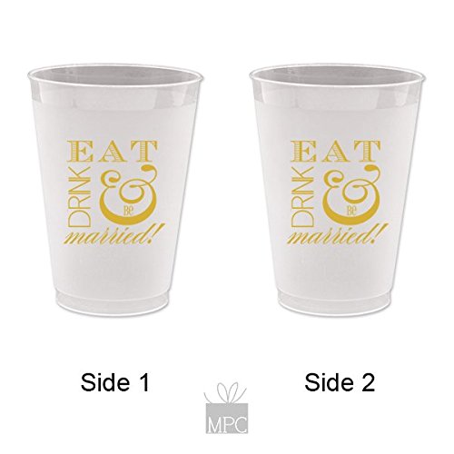 -. Title : Engagement/Wedding Frost Flex Plastic Cups - Eat Drink and be Married