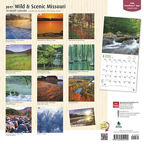 -. Binding : Office Product -. Brand : 2017 Calendars -. EAN : 0697691647012 -. Feature : 2017 Calendar featuring beautiful full color photographed images for every month of the year. / Includes Holidays and Observances / Perfect for office spaces, bedrooms, classrooms and more! / Makes a great gift for friends and family! / Keep your appointments and Birthdays organized in one place! -. Label : Brown Trout -. Manufacturer : Brown Trout -. Model : 54425 -. MPN : 54425 -. PackageQuantity : 1 -. PartNumber : 54425 -. ProductGroup : Office Product -. ProductTypeName : OFFICE_PRODUCTS -. Publisher : Brown Trout -. Studio : Brown Trout -. Title : 2017 Monthly Wall Calendar - Missouri, Wild & Scenic -. UPC : 715658173913