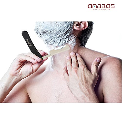 Classic Shaving Razor, Anbbas Stainless Steel Barber Straight Razor Black Handle with Quality Artificial Leather Pouch for Men's Manual Close Shaving(Silver)
