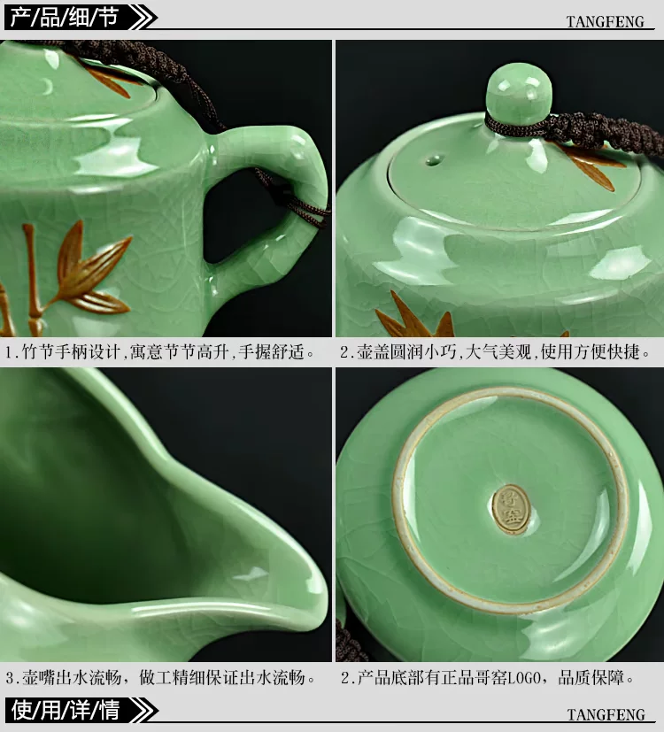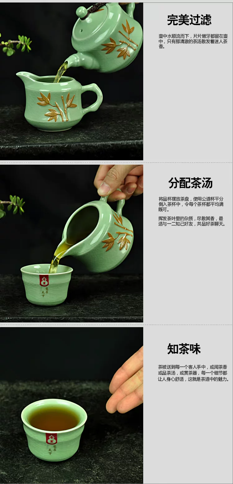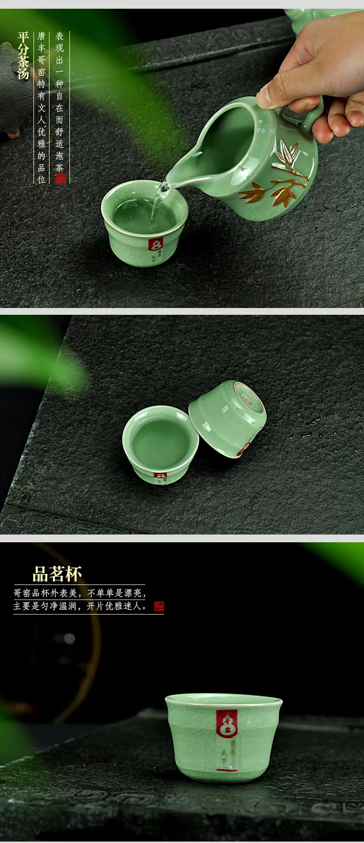 3.哥窑茶具价格适中,做工精细,是居家品茶,会客待友送礼之时的品味首选。哥窑茶具不仅泡茶茶香浓厚而且茶具釉厚如脂,光莹鲜艳,胎质细腻坚致,光滑美观。是泡茶、饮茶之佳品,长时间的使用哥窑茶具的开片更加光泽美观,更具有收藏意义和价值所在。