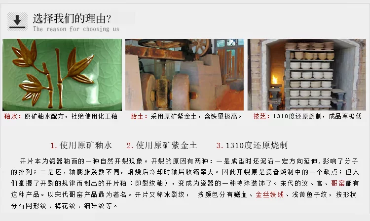 2.哥窑茶具开片特征为金丝,是指开片中,有细小的开片,初用是无色的线,使用久后茶汁渗入其中,线成黄色如同金丝。更加增添了哥窑茶器的使用乐器。且每一件哥窑的开片都是独一无二的,更可以说每一件都是孤品。