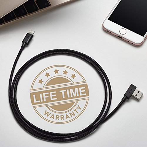 nonda ZUS [Apple MFi Certified] Super Duty Lightning Cable with Kevlar Fiber[4ft/1.2m, 90-degree], Charger and Data Sync for iPhone, iPad, iPod (Black)