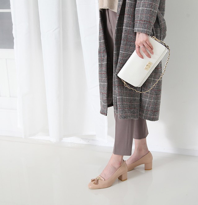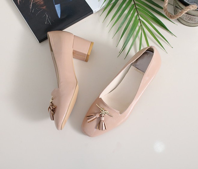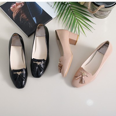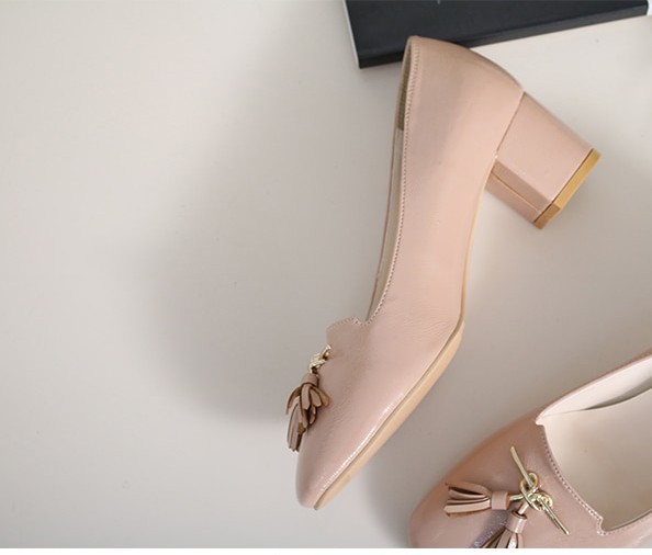 商品名:パンプス レディース タッセル 太ヒール チャンキーヒール 2018 春 ファッション 靴 婦人靴