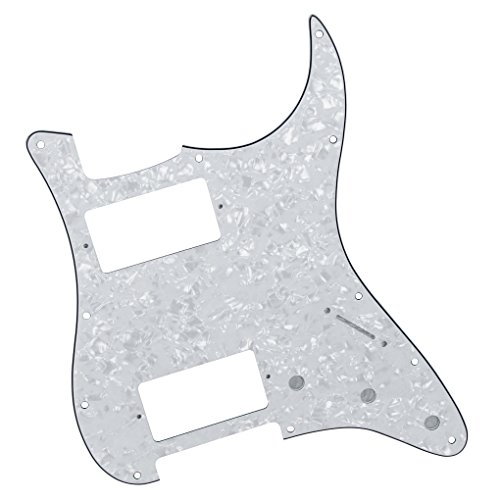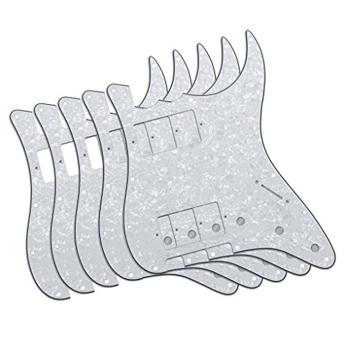 Product Description Specification:Humbucker-Humbucker pickguard, 11 hole standard mounting pattern with counter-sunk mounting screw holes.3 control pot holes pre-drilled in Standard Volume-Tone-Tone Positions (Positions 1, 2, 3).1 standard size switch cut with 2 switch mounting holes (1 each side of switch cut; not counter-sunk).Humbucker hole size: 38mm x 70mmHumbucker screws center/center: 78mmMaterial: Made of 4ply Pearl Plate, with off set screw holes and beveled edge.With pure aluminum foil shielded.Color: White PearlWith protective film on the surface, while using please split it off.Note:Item's color might be different from the picture because of the aberration.Package Includes:5 x guitar pickguards 0