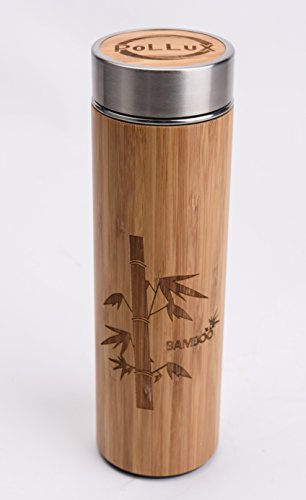 Travel Coffee Mug for hot and cold beverages; 16-ounce/450ml capacity Ideal Size and a Big Infuser 2 in 1, which is convenient to brew not only coffee, but also leaf and fruit tea. Each bottle is unique and different from the other due to the bamboo wood. Our Travel Coffee Mug with ss304 inner lid is leak-proof with silicone ring ttached to lid. 100% spill proof lid that is easy to open or close quickly. It's easy to clean. 100% BPA free. ECO friendly bamboo and stainless steel interior. Made with high quality grade 18/8 Stainless Steel double layers and outside make with 100 % Natural Bamboo. Bamboo layer creates an insulated triple-wall and screwed bottom performed without glue, that can keep your coffee or tea hot for the entire commute! This tumbler is great for cold beverages and brews as well. Wall Insulation To keep Your Drink Ice Cold or Hot All Day Long. Perfect For The Home, Office, Gym Or A Nice Refreshing Day at The Beach. This Thermos mug lightweight, compact, comfortable to hold, and all natural mug will definitely turn heads. Great Gift for your Friend and Family. 100% Satisfaction Guarantee & 24 Hour Email Support from a family business that cares.Feature