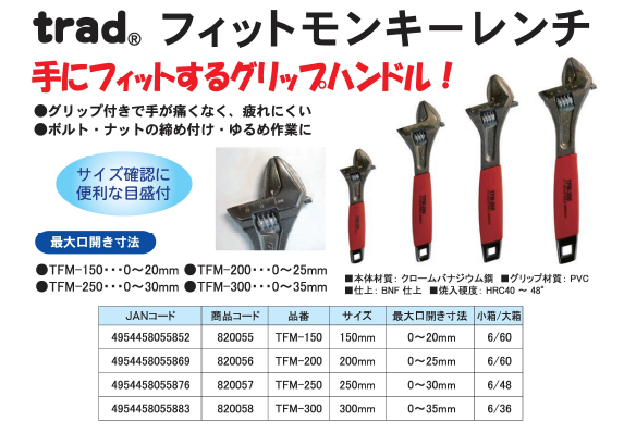 【商品名】(業務用5セット)TRAD フィットモンキーレンチ/作業工具 【300mm】 目盛付き TFM-300 〔業務用/DIY用品/日曜大工/スパナ〕