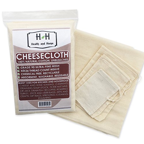 -. Title : Cheesecloth - Ultra-Fine Grade 90 Unbleached 100% Natural Cotton - Uses: Cooking, Nut milk Filter, Cheese Making, Broth Strainer, Muslin Bag, Herbs Spice Sachet, Crafts, Household Cleaning, Reusable, Quality Cloth from Health&Home