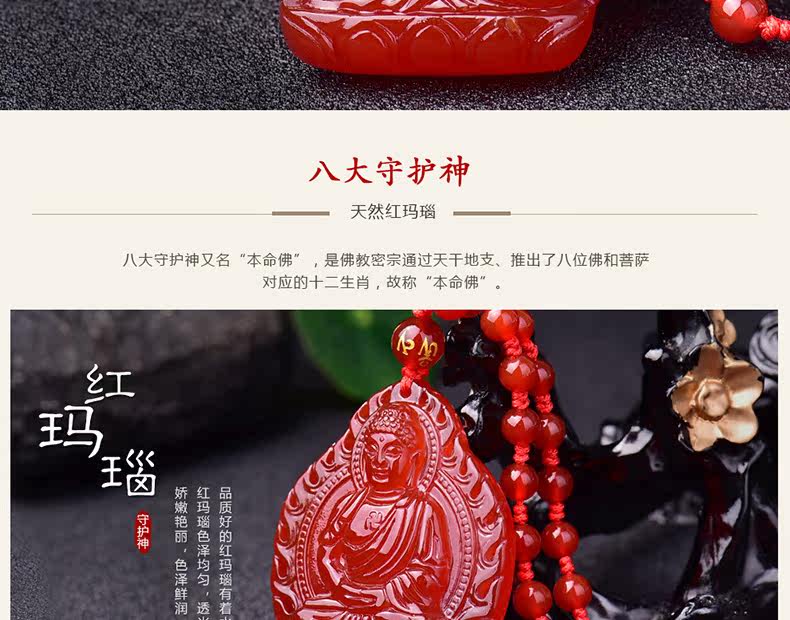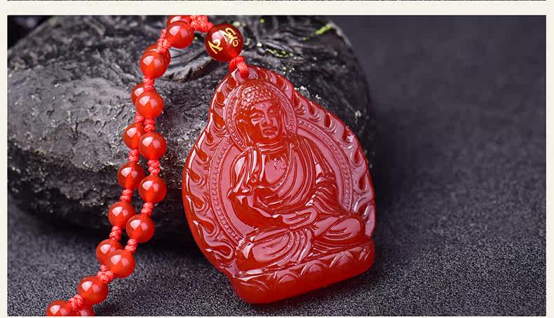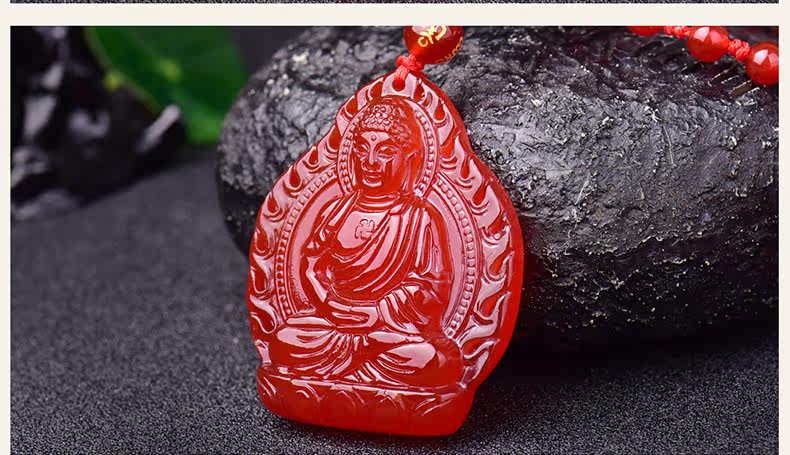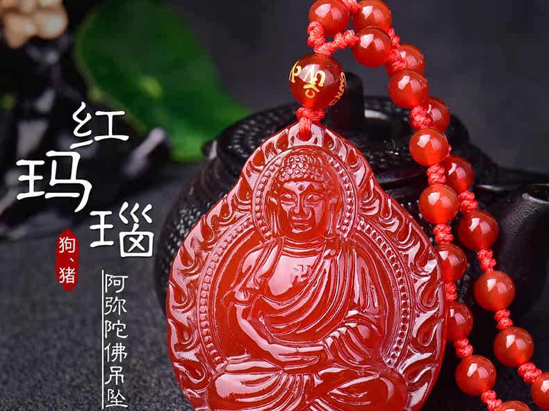开光天然红玛瑙阿弥陀佛菩萨本命佛吊坠生肖属狗猪守护神男女